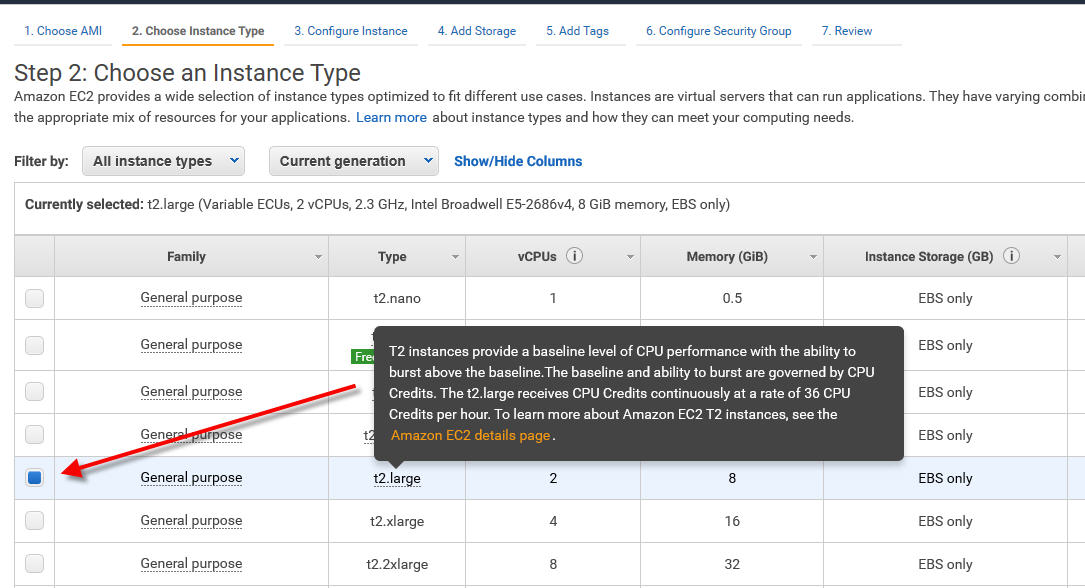 As per Zimbra requirements, select a t2.large: